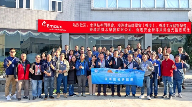 To further strengthen learning and investigation, broaden horizons, and explore new ideas, and to foster a positive atmosphere of mutual support and learning among members and associations, and to foster common development, on November 18, 2023, Mr. Huang Binghui, a team of distinguished guests from the five co-organizers (in no particular order): the Hong Kong Plumbing and Drainage Institution, the Australian Institute of Builders (Hong Kong Branch), the Hong Kong Institute of Certified Works Engineers, the Hong Kong Association of Safety Supervisors, and the Water Technology Alumni Association) visited and exchanged ideas with Emaux (Zhongshan) Swimming Pool Equipment Co., Ltd., a professional manufacturer of international standard water treatment products. Emaux warmly welcomed and accompanied the guests on the tour, allowing them to exchange ideas and achieve mutual progress.